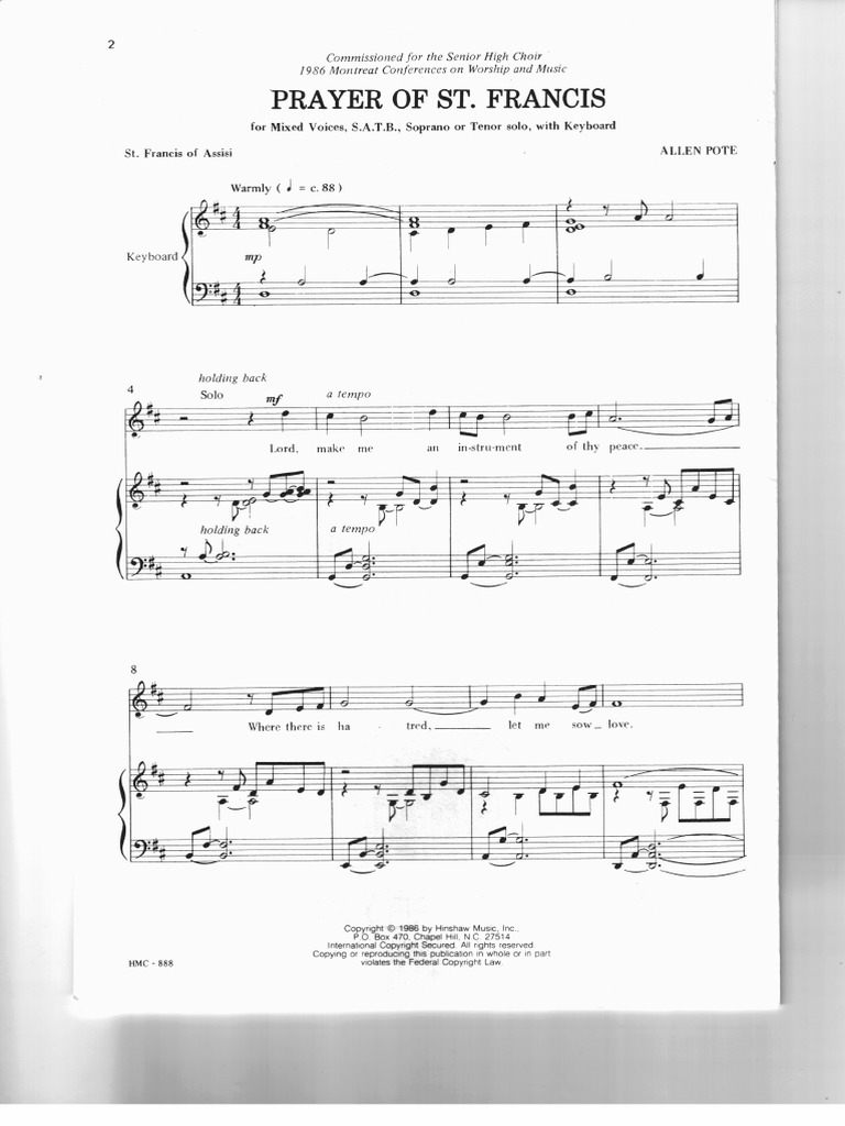 Prayer Of St Francis Pdf Music. Canticle Of The Sun Prayer By St Francis Of Assisi For Satb Organ And Rainstick. Where there is doubt faith.